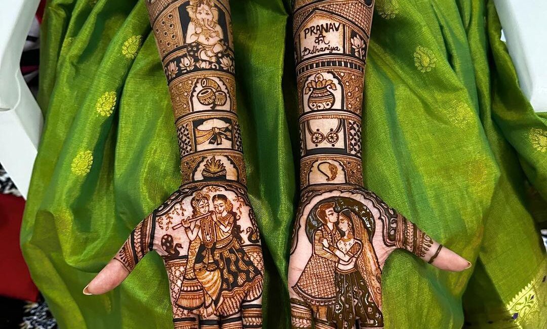 Bridal mehndi usually takes 4 to 6 hours, depending on the design, detailing, and coverage of hands and feet.