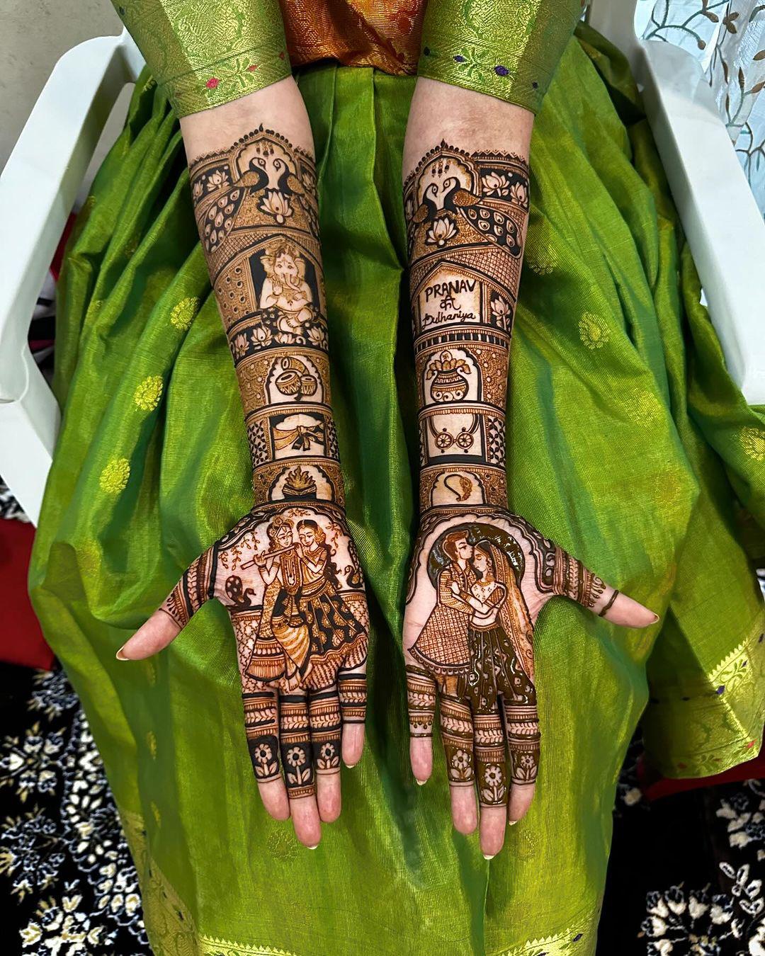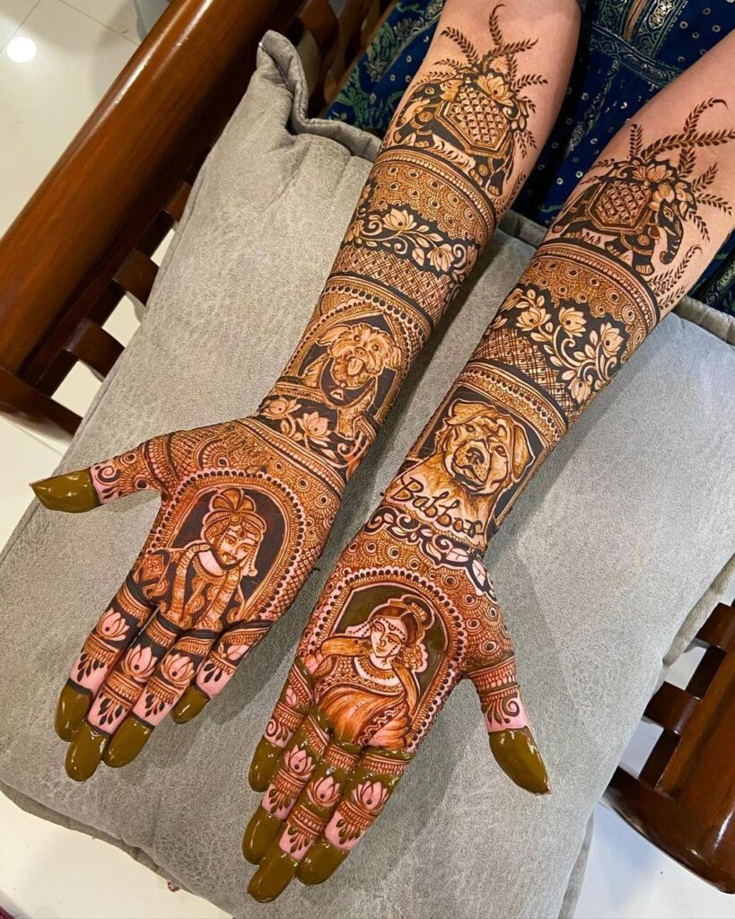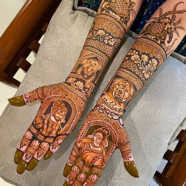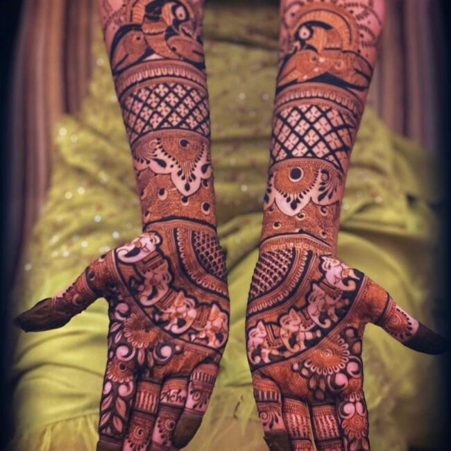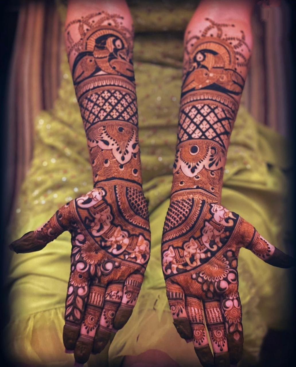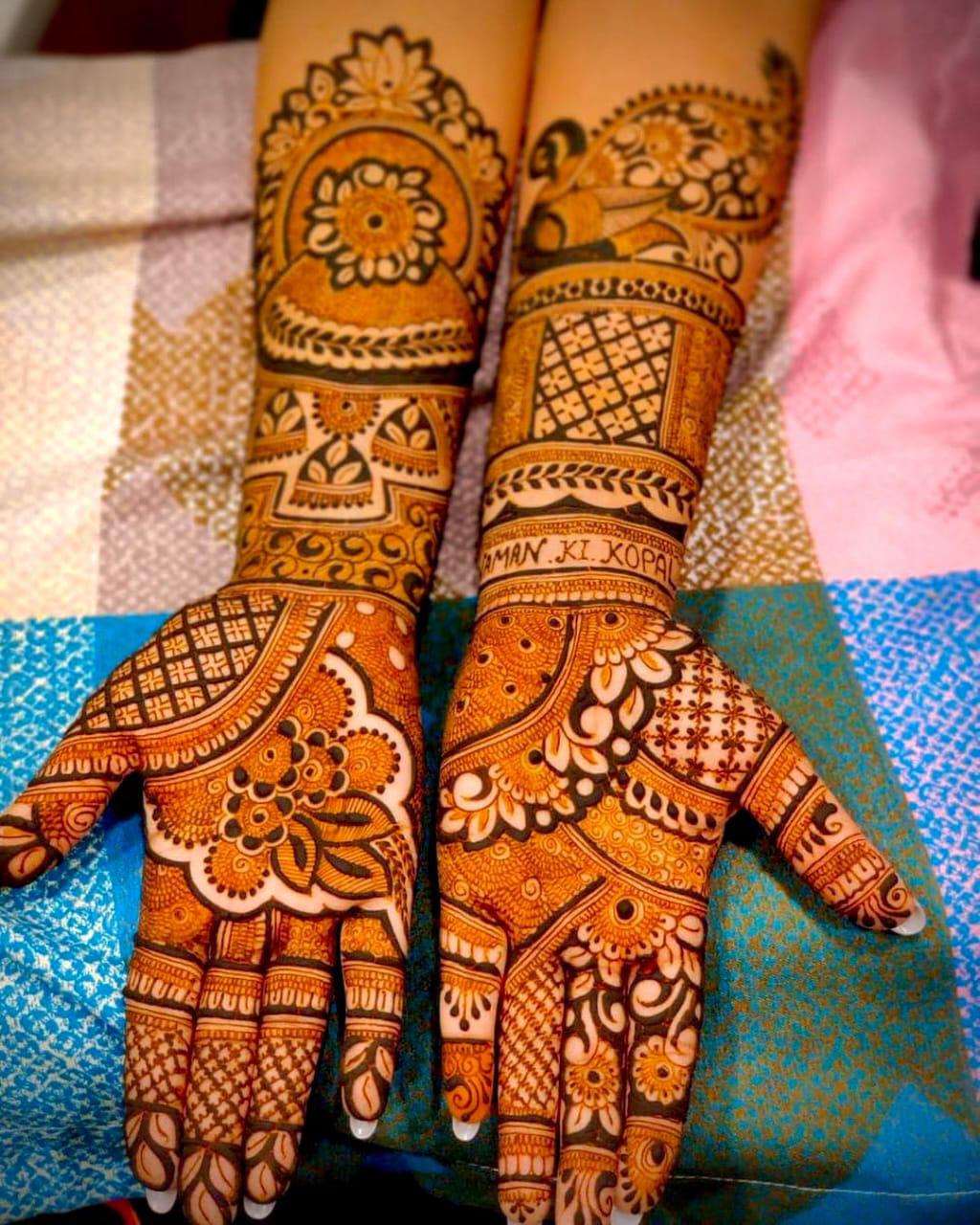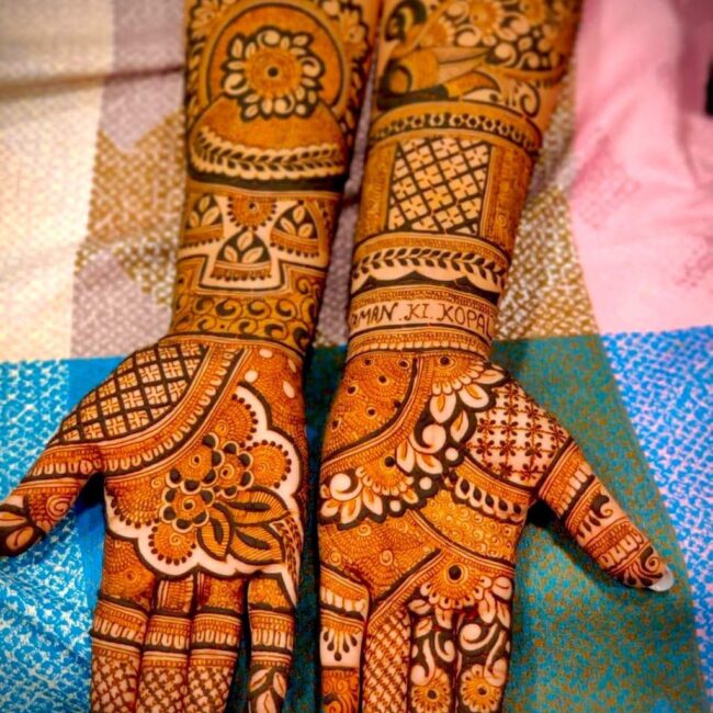 Specially designed bridal mehndi package with detailed patterns, fine finishing and dark color results.